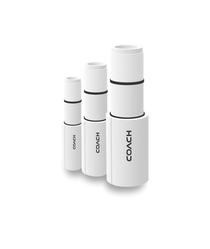 COACH pipes are high performance casing pipes and column pipes for bore well application. It should be carefully designed to withstand high internal hydro static pressure exerted by pump and the tensile strength to carry the total weight of pumpset and water column as well. The COACH pipes are carefully formulated and designed considering all safety factors which results in its effective performance and durability. These pipes are produced in different sizes and types, should be selected carefully according to the installation requirements.